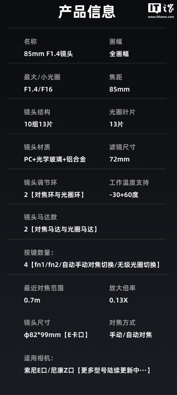 IT之家附该镜头详细参数如下:
