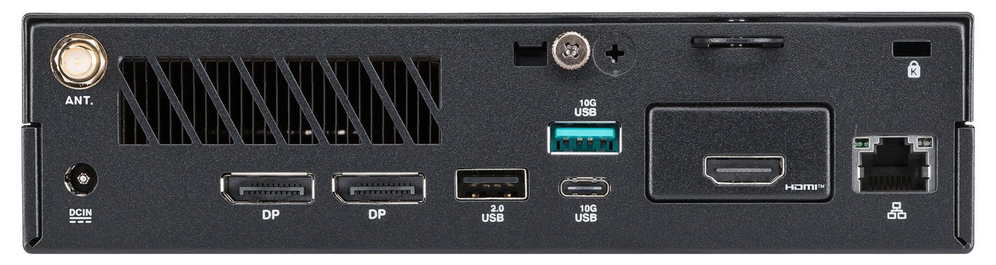 其方面则提供了 1 个支持 PD-in 的 USB-C 10Gbps、2 个 USB-A 10Gbps、1 个 USB-A 2.0 (480Mbps)、2 个 DP 1.4、1 个 2.5GbE RJ45、1 个 DC-in、1 个肯辛通 Kensington 安全锁孔,此外还包括一个能在 DP1.4 / HDMI 2.1 / COM / VGA / 2.5GbE RJ45 中选择的可配置端口。