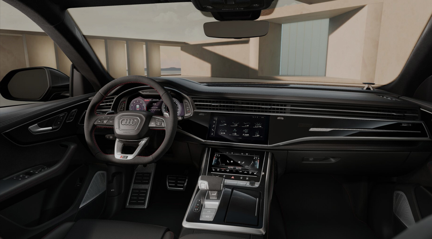 性能化配置上,2026 款奥迪 RS Q8 Performance 延续了其高性能的定位,继续提供 RS 运动排气系统、动态四轮转向、RS 碳陶刹车盘搭配前 / 后红色刹车卡钳、运动型自适应空气悬架系统、RS 布局的奥迪虚拟座舱增强版、quattro 特性的运动差速锁、渐进式转向系统以及 Audi Sport 运动前排座椅等配置。