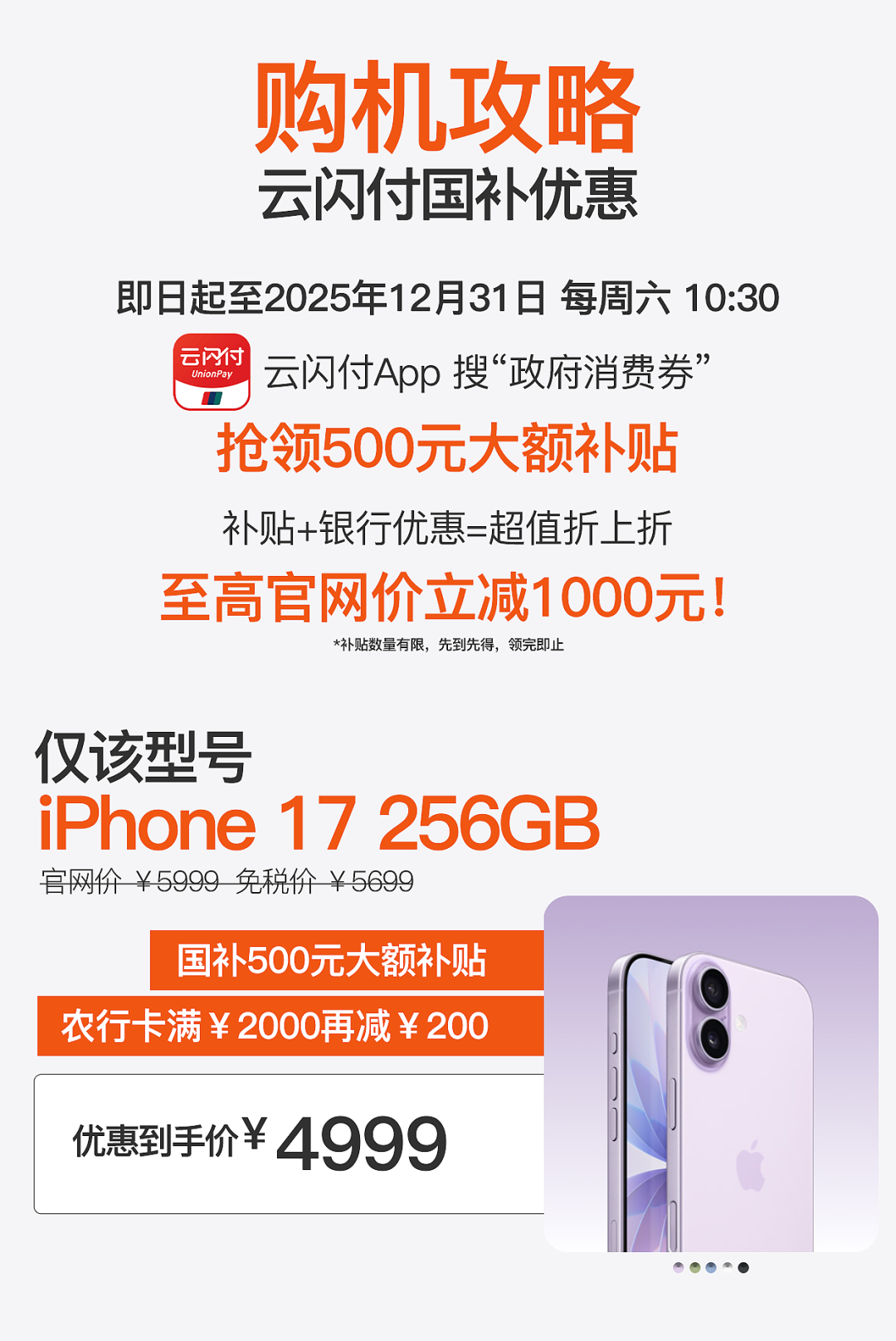 此外,海控全球精品免税城可享受部分银行的满减福利,叠加 500 元国补优惠,最低到手价可达 4999 元。