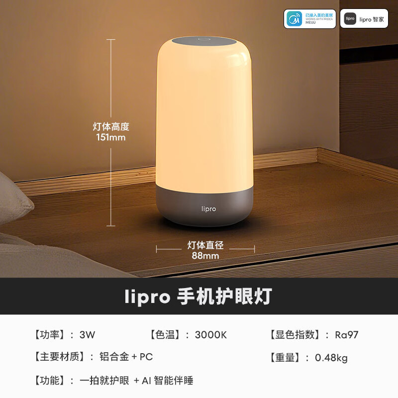 此外,该灯支持一键助眠、夜醒亮度自定义、AI 自适应关灯、App 远程控制等,内置 3350 毫安时电池,在 50% 亮度下续航至高 7 小时。