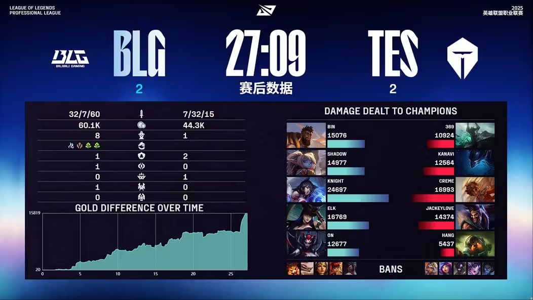IT之家 9 月 21 日消息,《英雄联盟》2025 LPL 总决赛于 9 月 21 日 16 点开打,BLG 战队和 TES 战队展开 BO5 对决,BLG 战队 3:2 TES 战队拿下年度总冠军,捧起队史第三座银龙杯,并将作为 LPL 赛区一号种子出征 2025 全球总决赛。