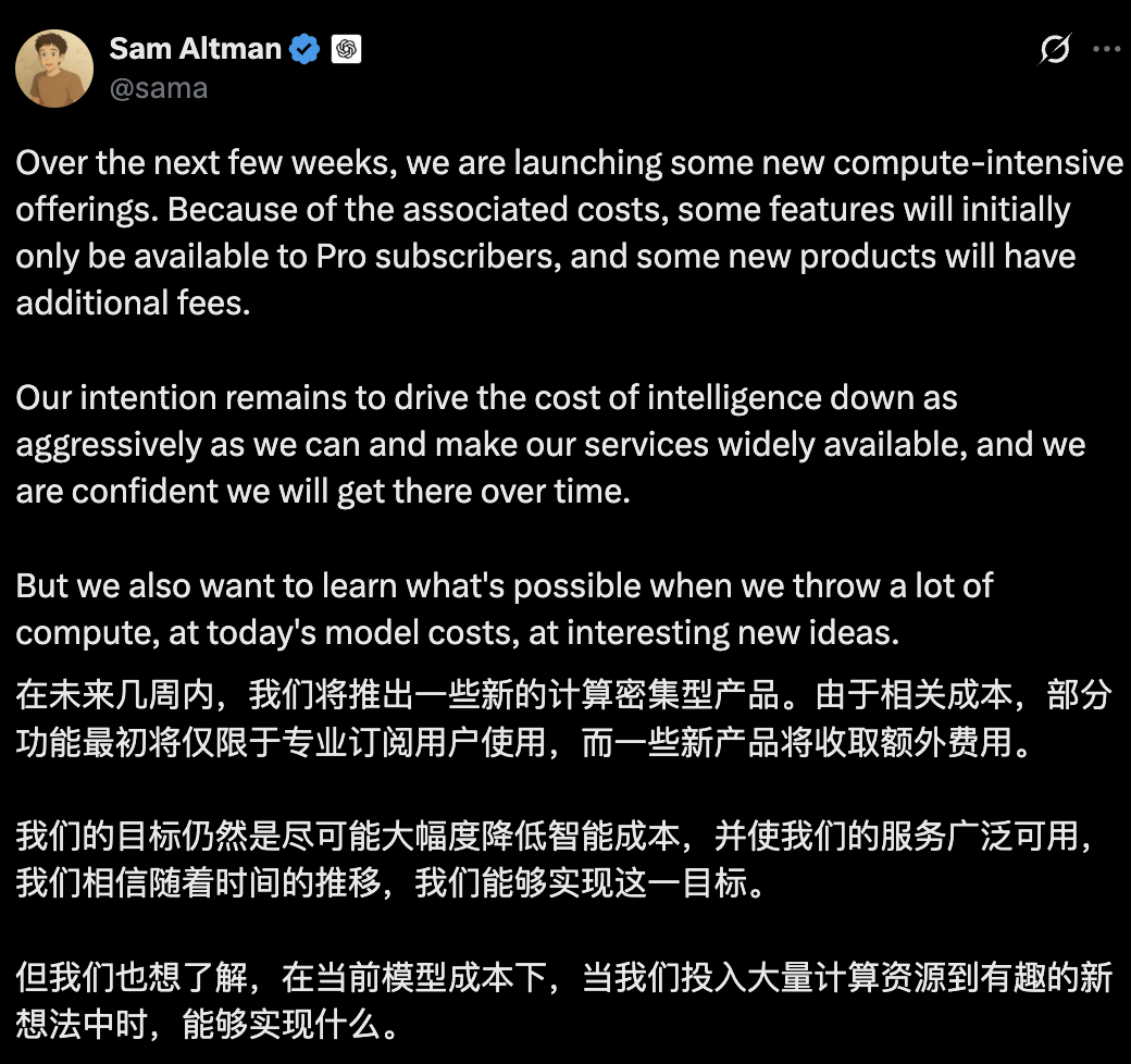 奥尔特曼预告未来几周新产品是计算密集型