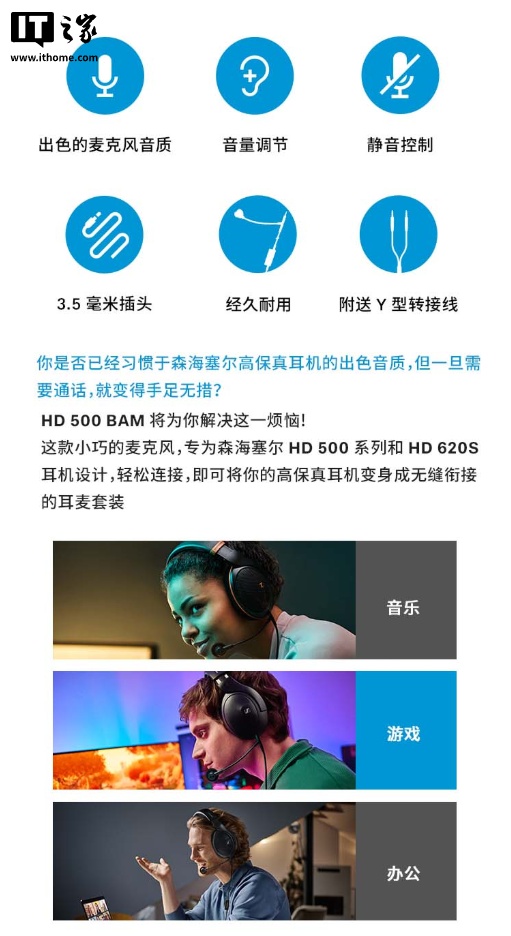 IT之家 9 月 23 日消息,森海塞尔今天推出了 HD 500 BAM 独立麦克风,可与自家的部分头戴式耳机配合使用,主打游戏、办公等场景,售价 499 元。