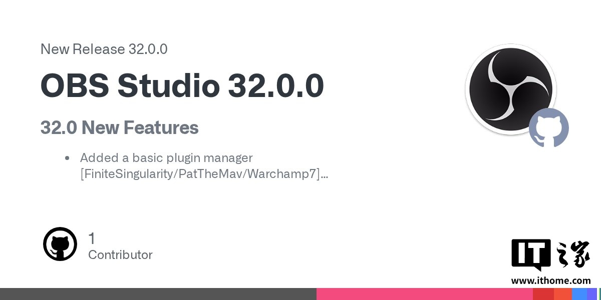 IT之家 9 月 23 日消息,科技媒体 NeoWin 今天(9 月 23 日)发布博文,报道称录屏直播软件 OBS Studio 32 现已上线,距离上个版本 31 发布已有近十个月。