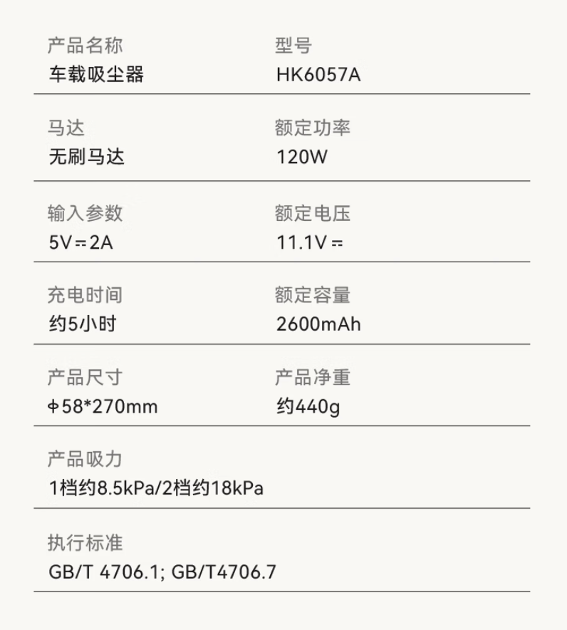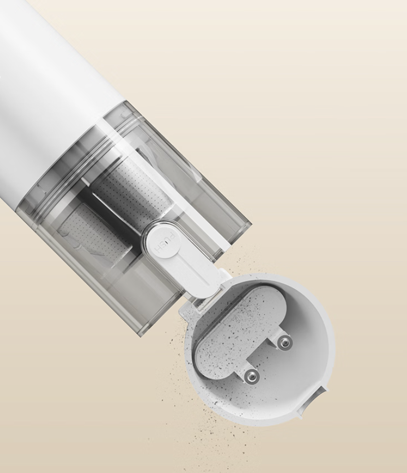 该吸尘器造型简洁,整体尺寸 270mm x 58mm,重量 440 克,采用一键倒尘设计,过滤组件支持水洗二次使用,额定容量 2600 毫安时,提供至高 35 分钟续航,充电时间约 5 小时。