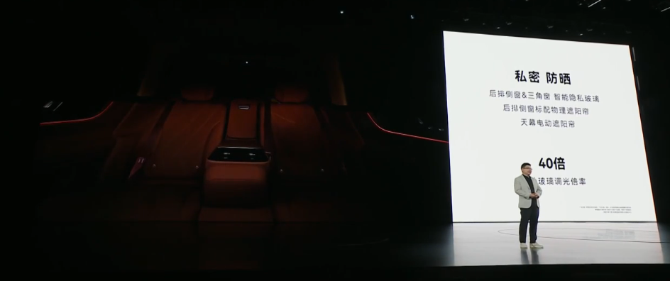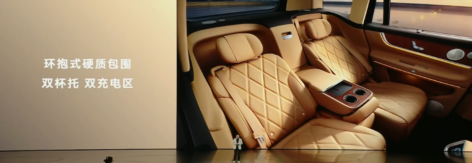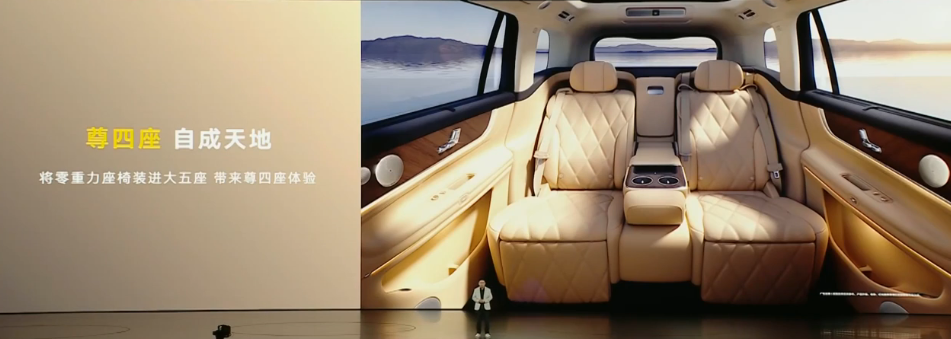 该车除了六座版本和五座版本,还带来了四座版本,后排两个零重力座椅,后排侧窗 & 三角窗配有隐私玻璃。
