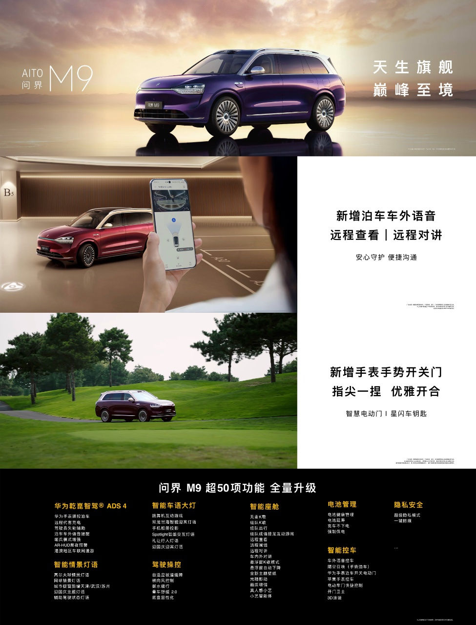 此外,2025 年 11 月底,问界 M9 将全系支持港澳地区车联网漫游,支持多项泊车辅助、车联网功能。