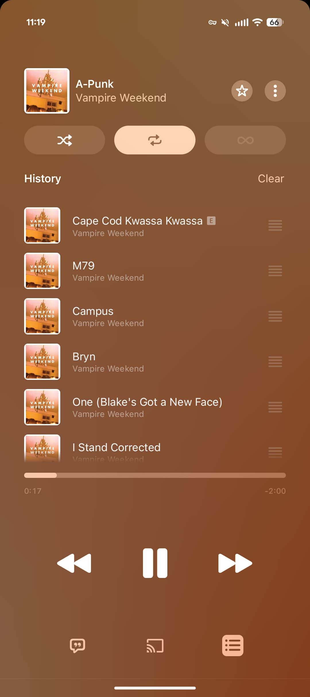 此外,更新也未加入 Liquid Glass 界面效果,但部分按钮(如随机播放、重复、自动播放)已改为胶囊形设计,整体视觉更加柔和统一。
