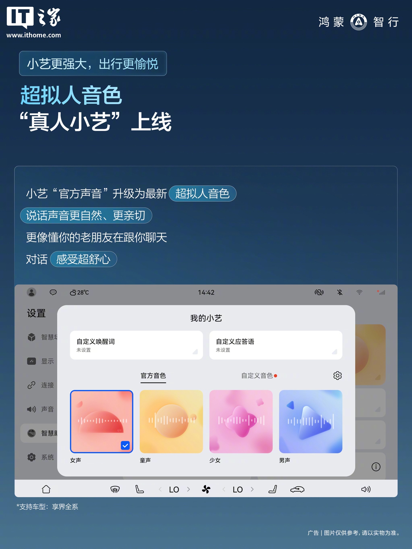 小艺“官方声音”升级为最新超拟人音色,说话声音更自然、更亲切(享界全系)。