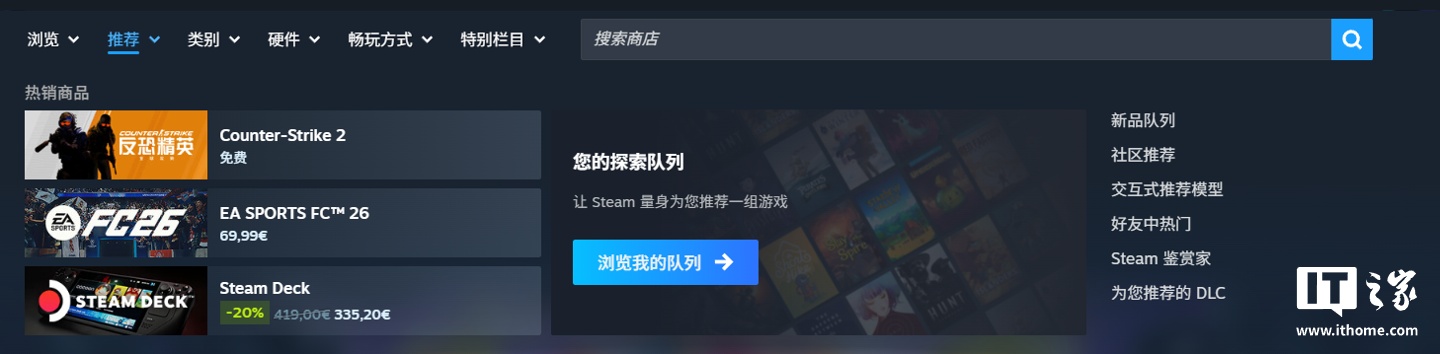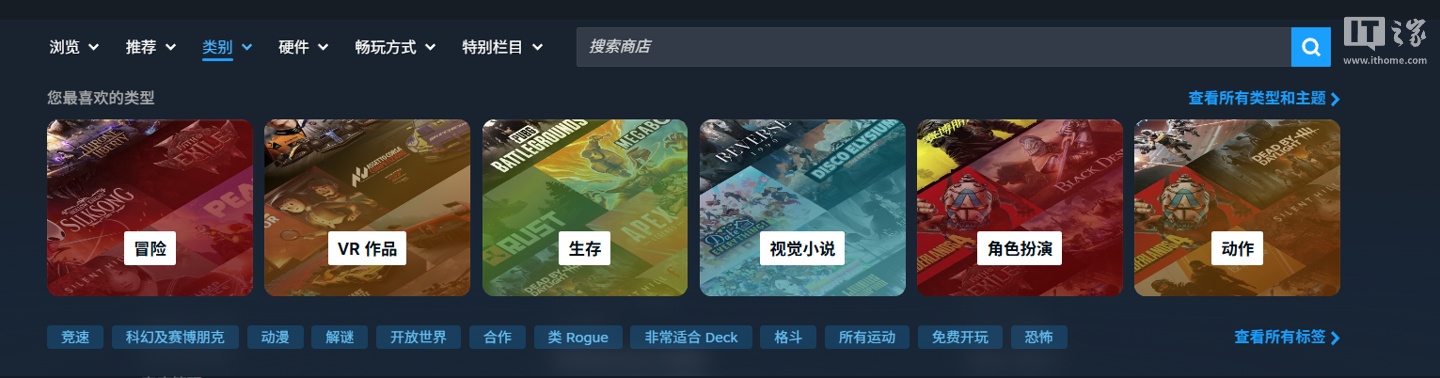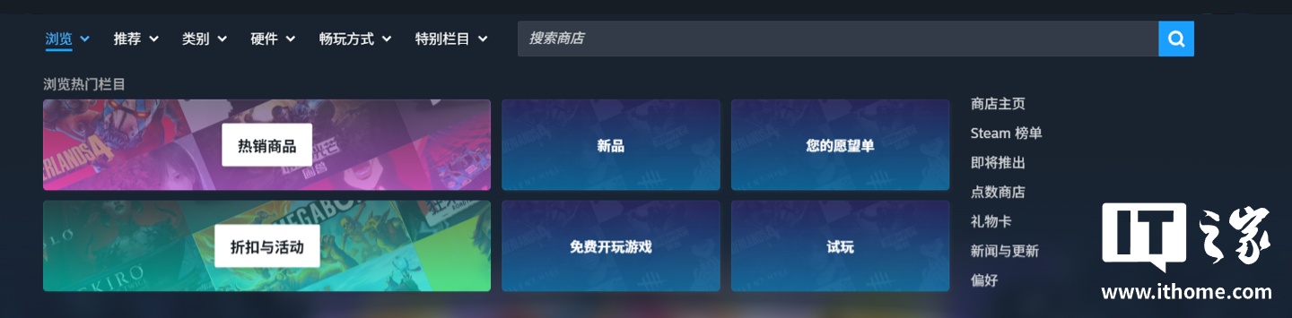 IT之家 9 月 24 日消息,V社今天发布公告,宣布新版 Steam 商店首页菜单已正式推出,可在 Steam 网页、客户端、Steam Deck 掌机及 Steam 手机 App 使用。