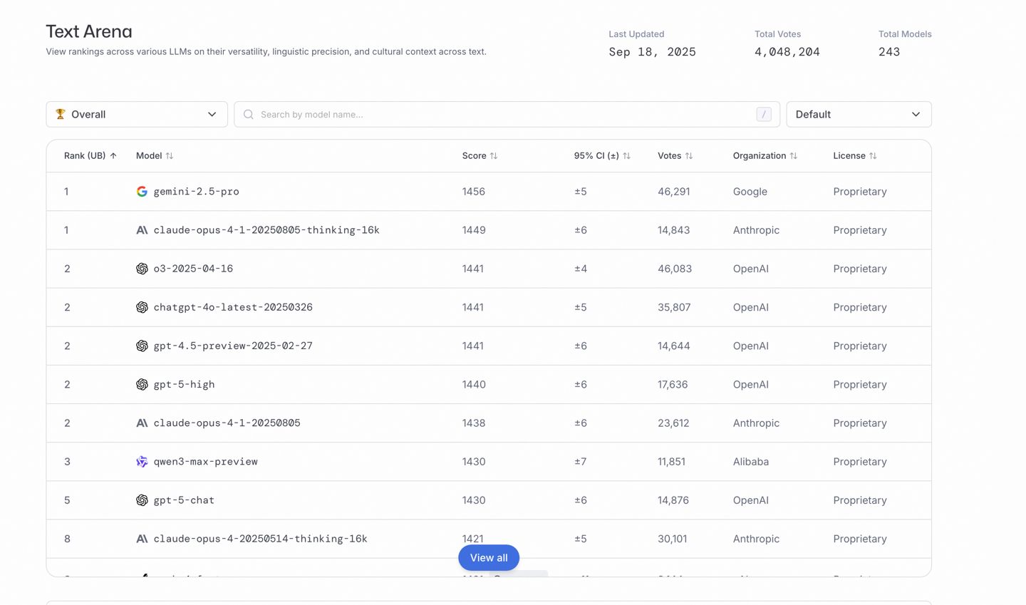 据介绍,Qwen3-Max-Instruct 的预览版已在 LMArena 文本排行榜上稳居全球前三(超越 GPT-5-Chat)。正式发布版本进一步提升了其能力,尤其在代码生成与智能体表现方面表现卓越。