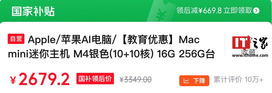 另外本次还支持换新补贴(旧机估值需满 300 元),京东再补贴 300 元,mac mini 折合仅需 2379 元。