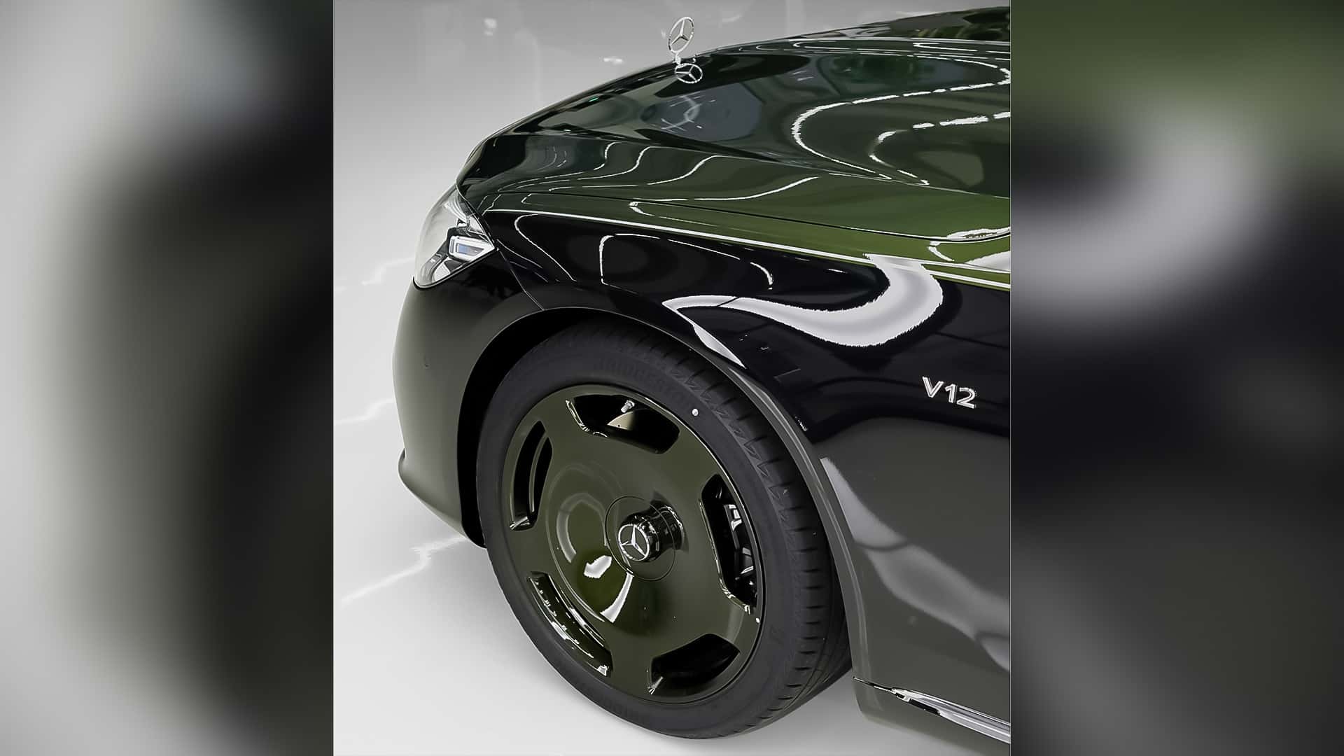 就连锻造轮毂也被涂成与车身顶部相同的绿色,但审美见仁见智。此外,该车前部大量使用的镀铬饰件进一步强化了这辆梅赛德斯最豪华轿车的华丽气质。