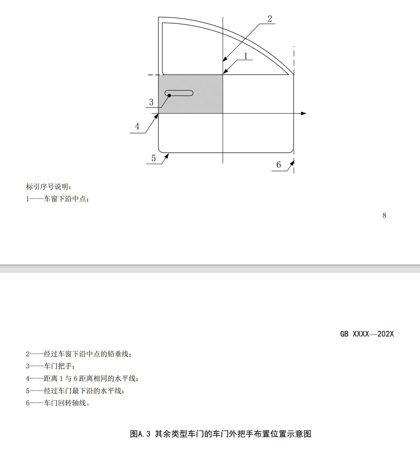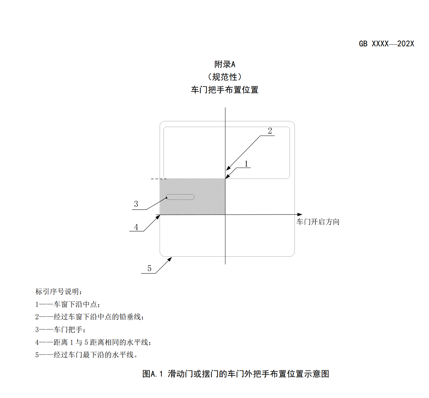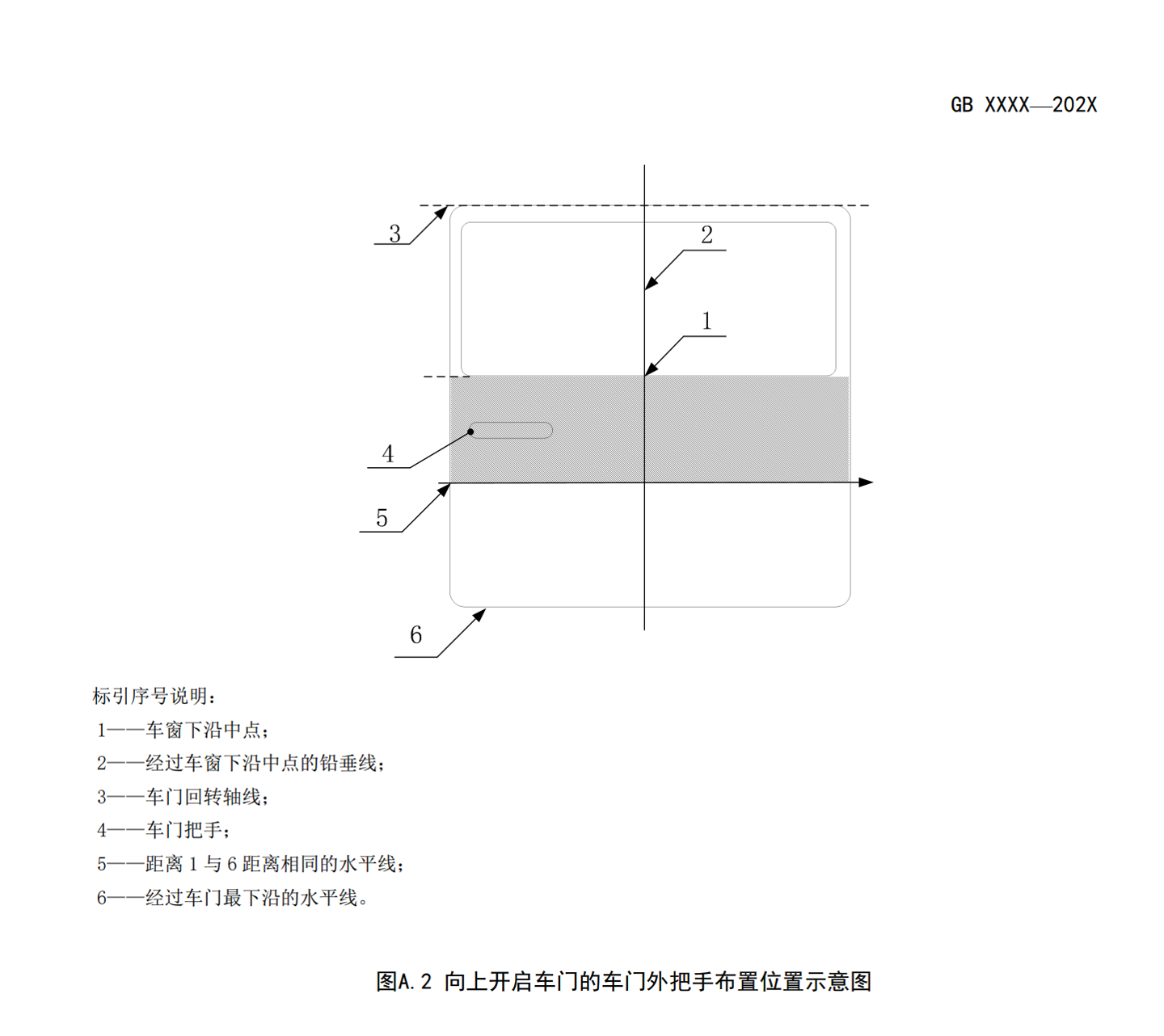 同时,每个车门(不包括尾门)应配置具备机械释放功能的车门内把手,应能在不借助外部工具的情况下,通过具备机械释放功能的车门内把手释放门锁并开启车门。若装备电动式车门内把手应同时配备具有机械释放功能的车门内把手,作为机械应急车门内把手。