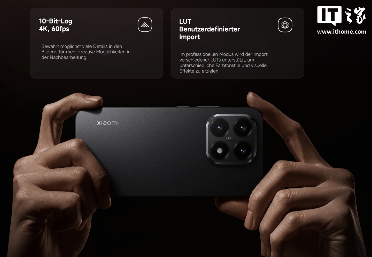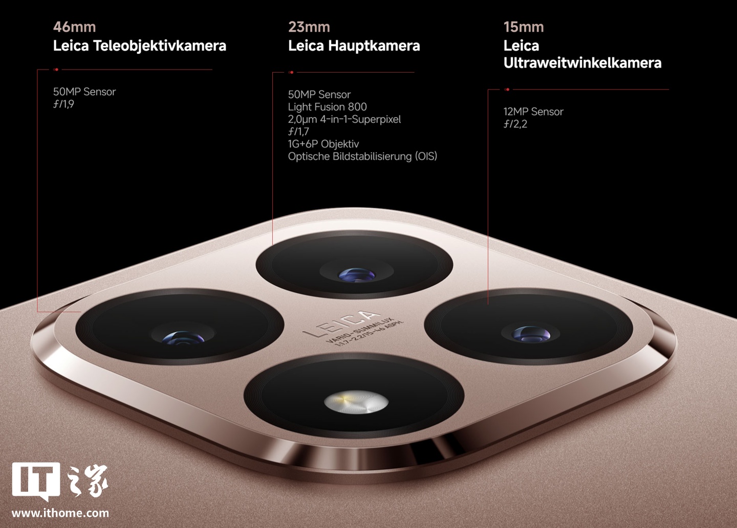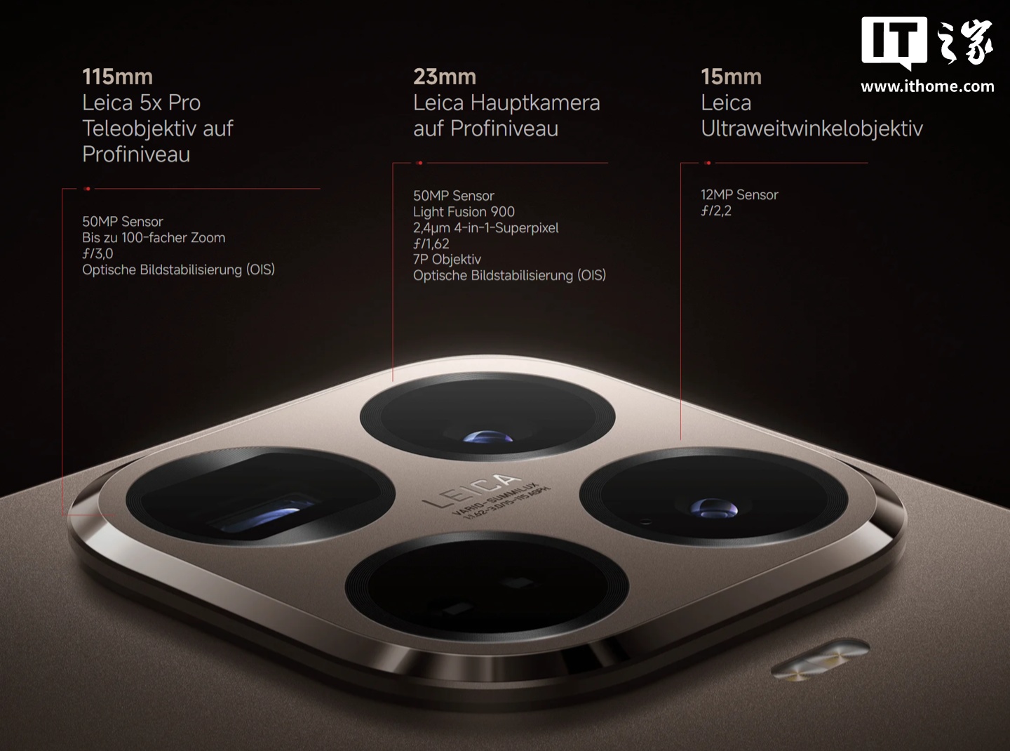 影像方面,这款手机搭载徕卡三摄系统,规格为 5000 万像素主摄 + 1200 万像素超广角 + 5000 万像素长焦,均有徕卡 Summilux 光学认证,其中主摄传感器为光影猎人 800,支持 10bit 4K 录像、60FPS Log 视频、LUT 色彩还原等。