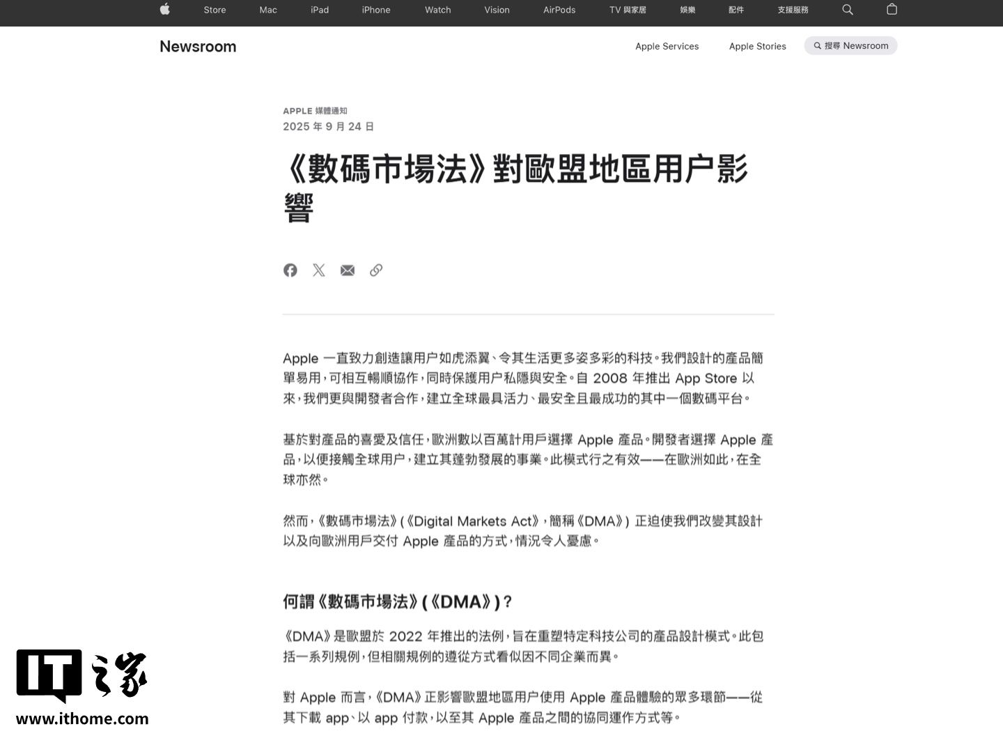 IT之家 9 月 25 日消息,苹果昨天在官网发布长文,谈及欧盟地区《数字市场法》(DMA)对用户的影响。