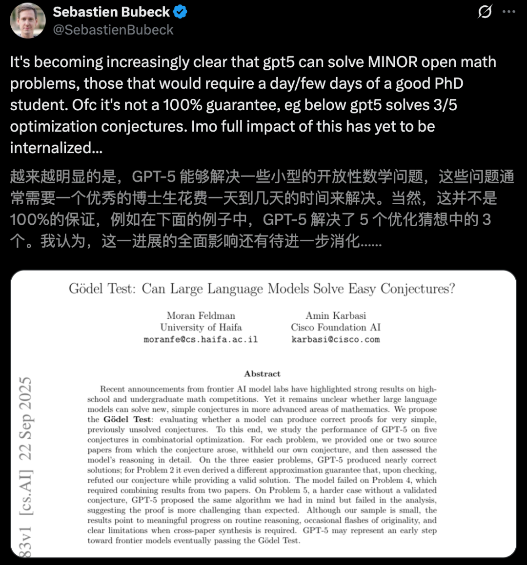 GPT-5 成功破解三大猜想,通过了「哥德尔测试」。