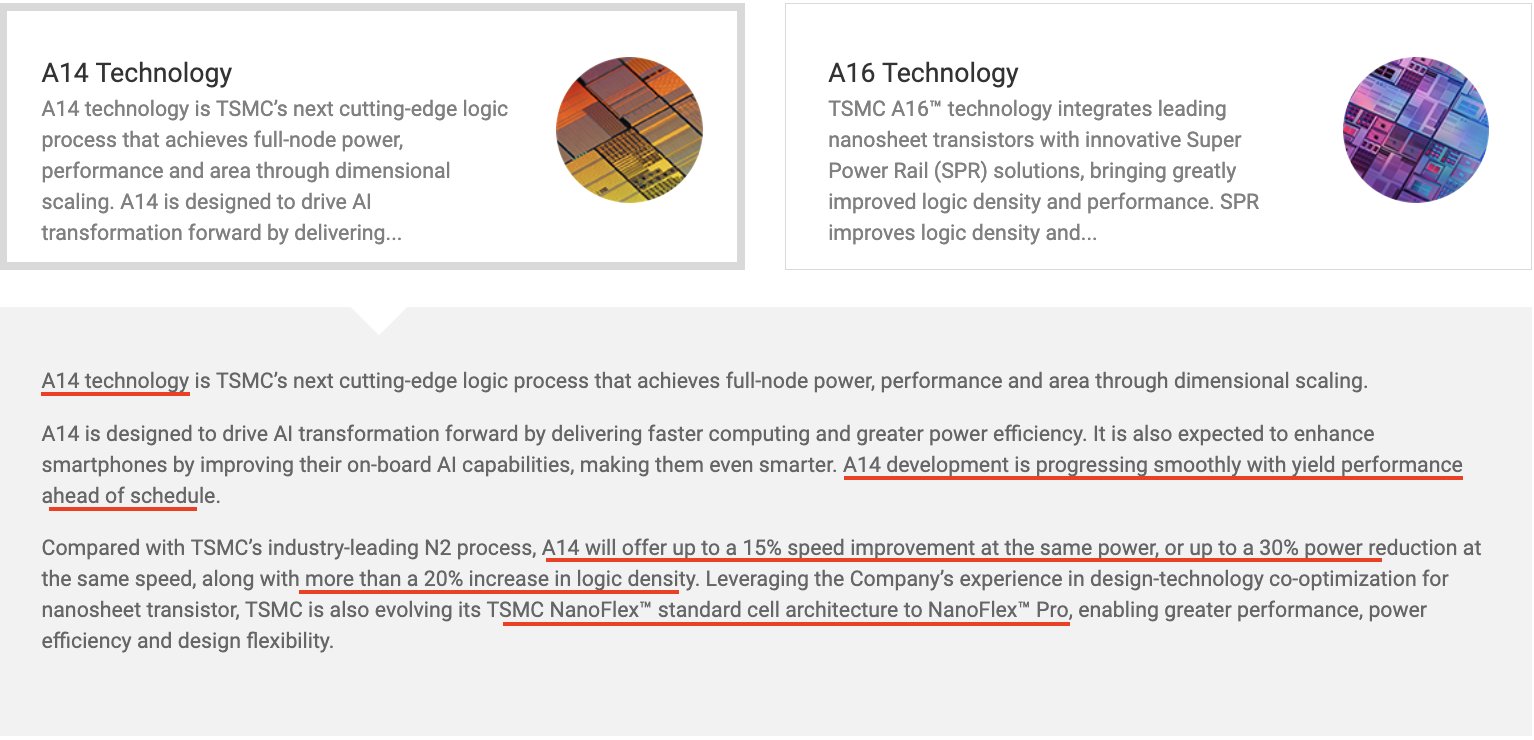 IT之家 9 月 25 日消息,科技媒体 Wccftech 昨日(9 月 24 日)发布博文,报道称台积电公布了其先进工艺路线图的最新进展,确认下一代 A14(1.4 纳米)工艺的研发进程顺利,其关键的良率表现甚至已经提前达到内部预期。