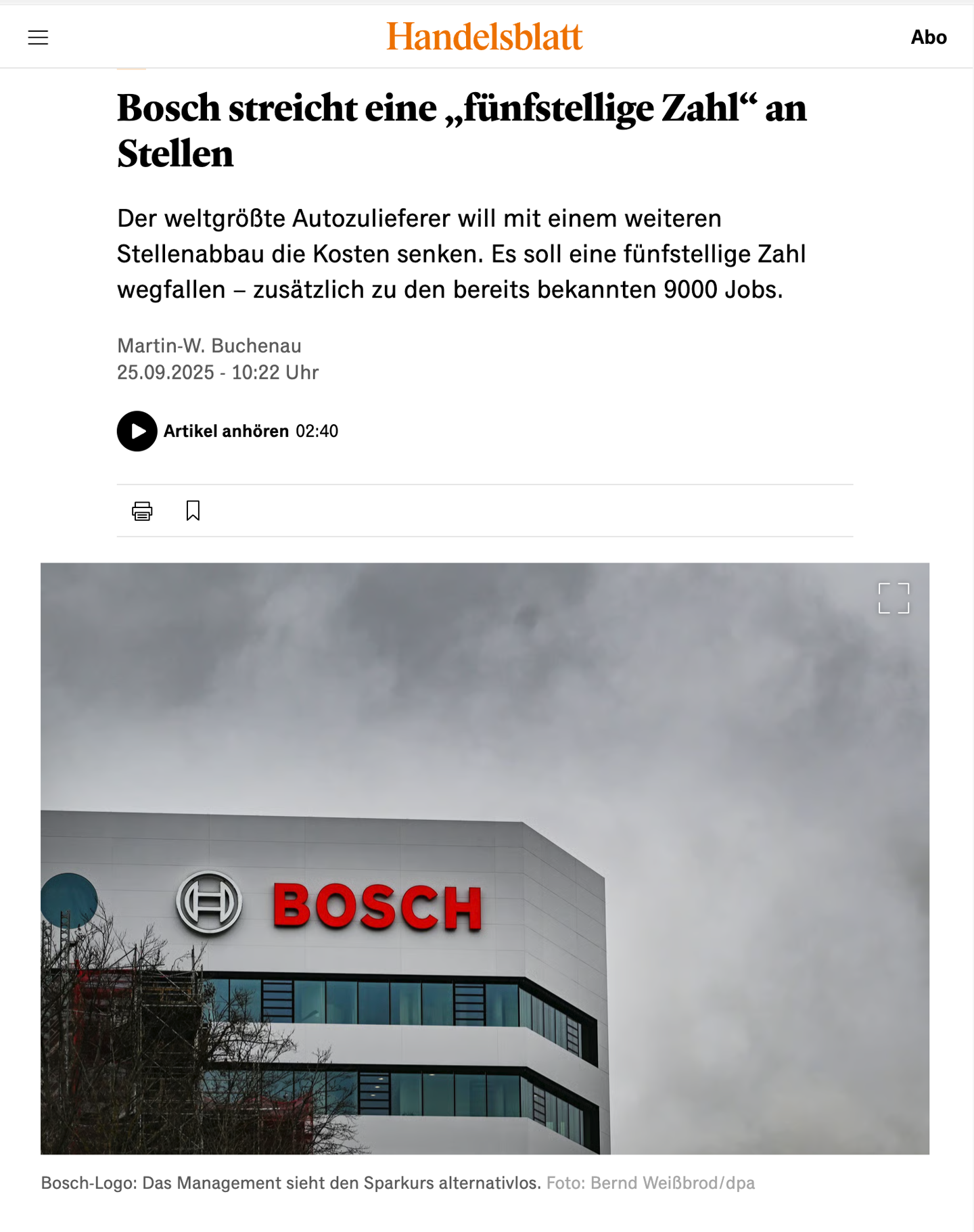 IT之家 9 月 25 日消息,据德国《商报》今日报道,博世正准备进行新一轮大规模裁员。行业消息人士向《商报》透露,裁员规模可能高达数万人。