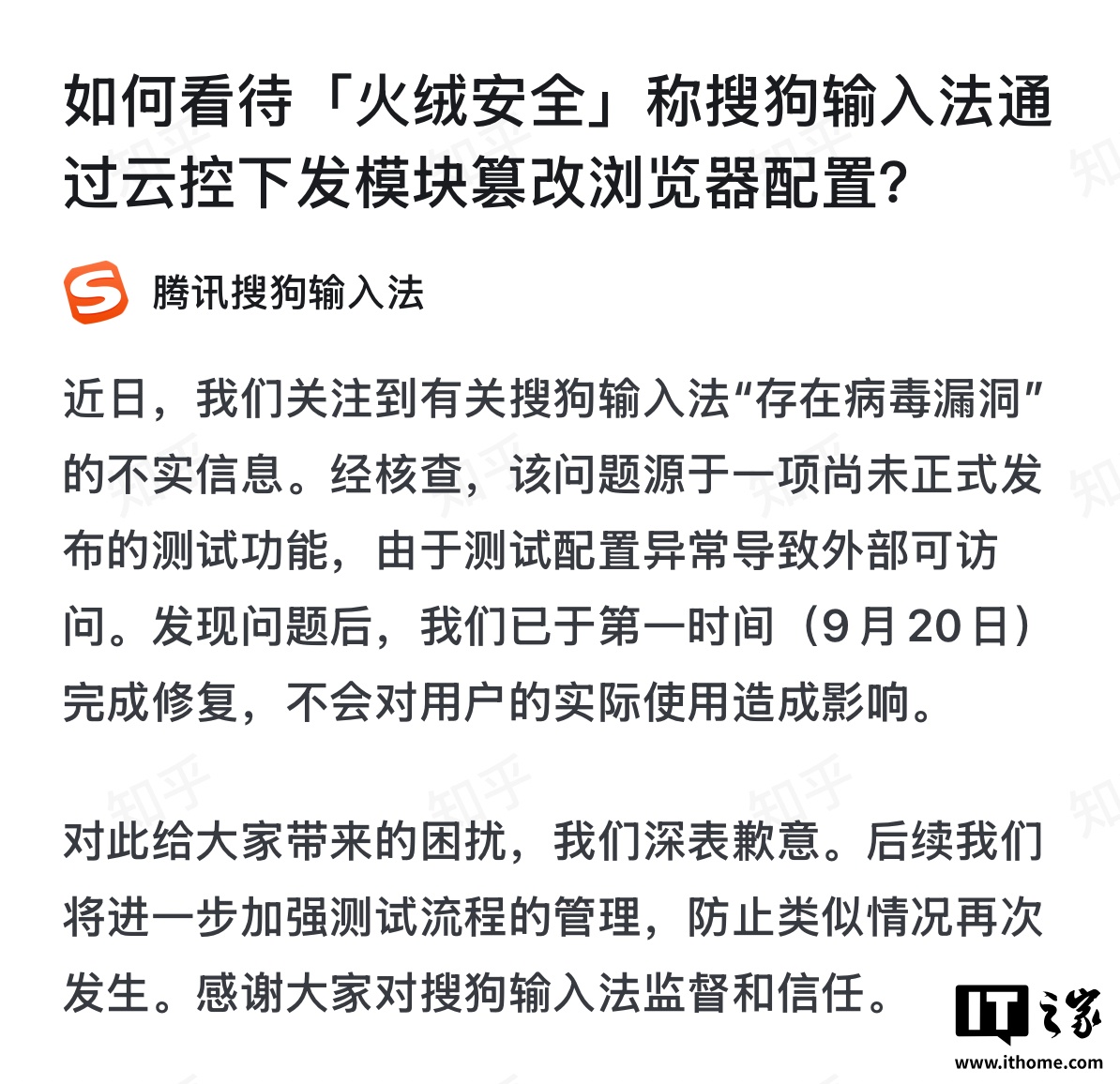 IT之家 9 月 25 日消息,针对被安全软件公司指控“暗中”篡改浏览器配置,搜狗输入法已作出回应。