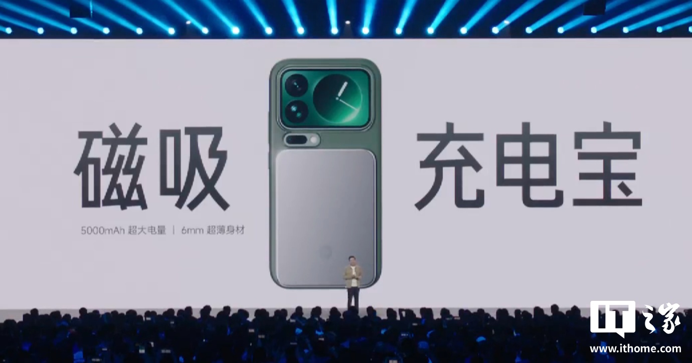 IT之家 9 月 25 日消息,在今晚的 2025 雷军年度演讲直播中,小米发布了一款磁吸充电宝新品。
