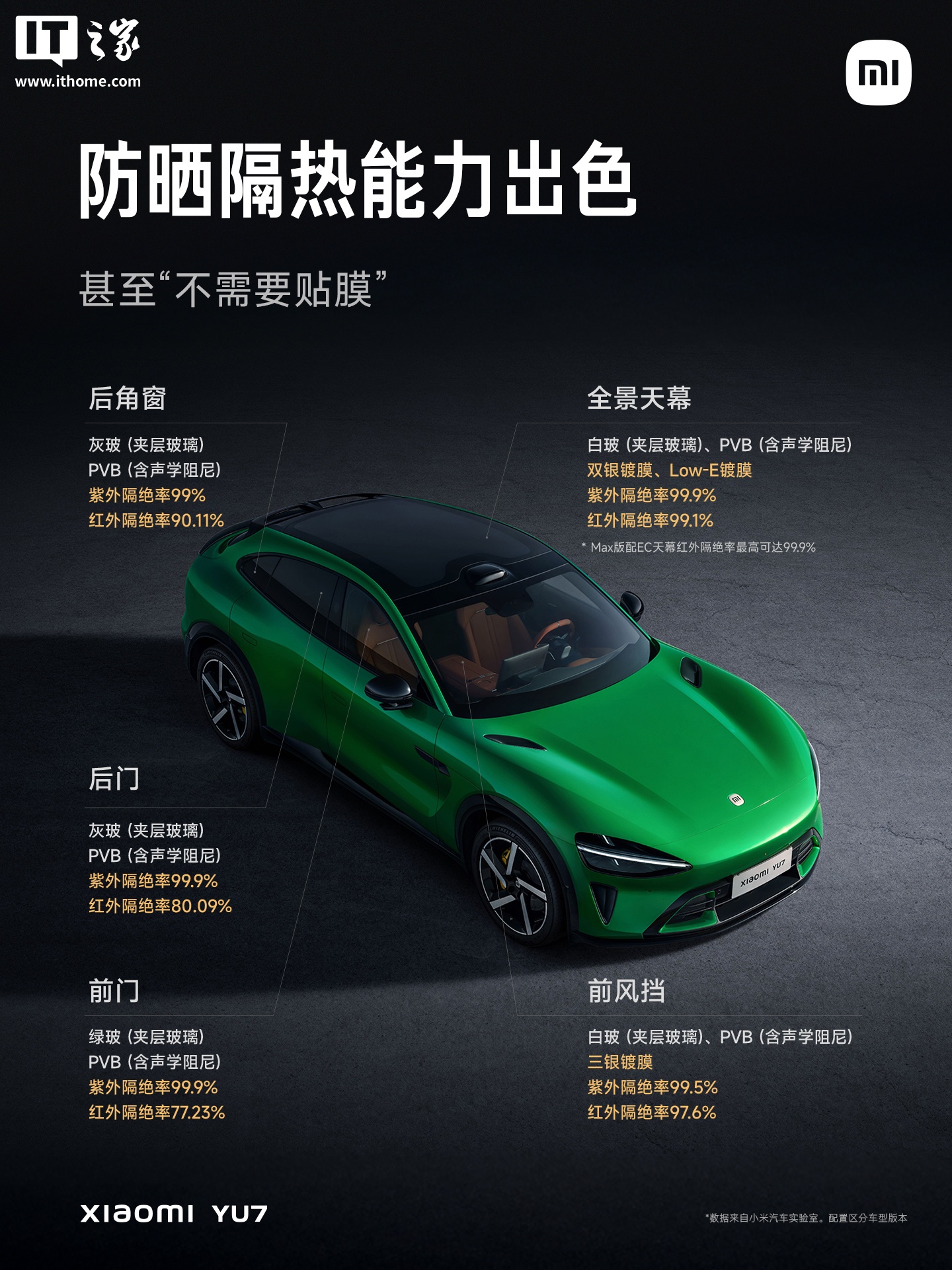 ③全方位防晒隔热,甚至“不需要贴膜”;