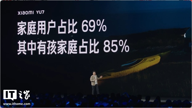 小米 YU7 家庭用户占比 69%,其中有孩家庭占比 85%。