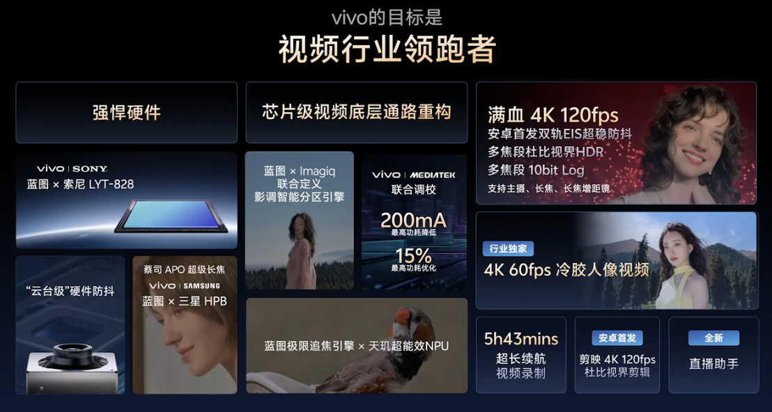 新机支持满血 4K120fps 杜比视频、多焦段 4K 120fps 10bit log 视频拍摄等。
