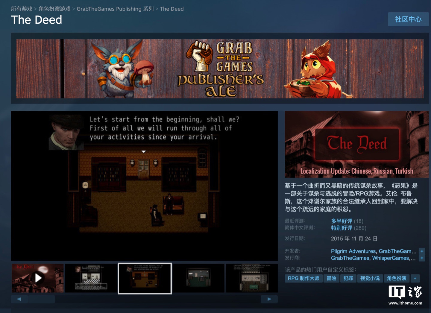 IT之家 9 月 26 日消息,发行商 GrabTheGames 宣布旗下游戏《The Deed》在 Steam 平台开启免费领取,游戏在国区原价为 6 元,玩家可以在北京时间 9 月 28 日凌晨 1 点前免费领取,IT之家附领取地址。