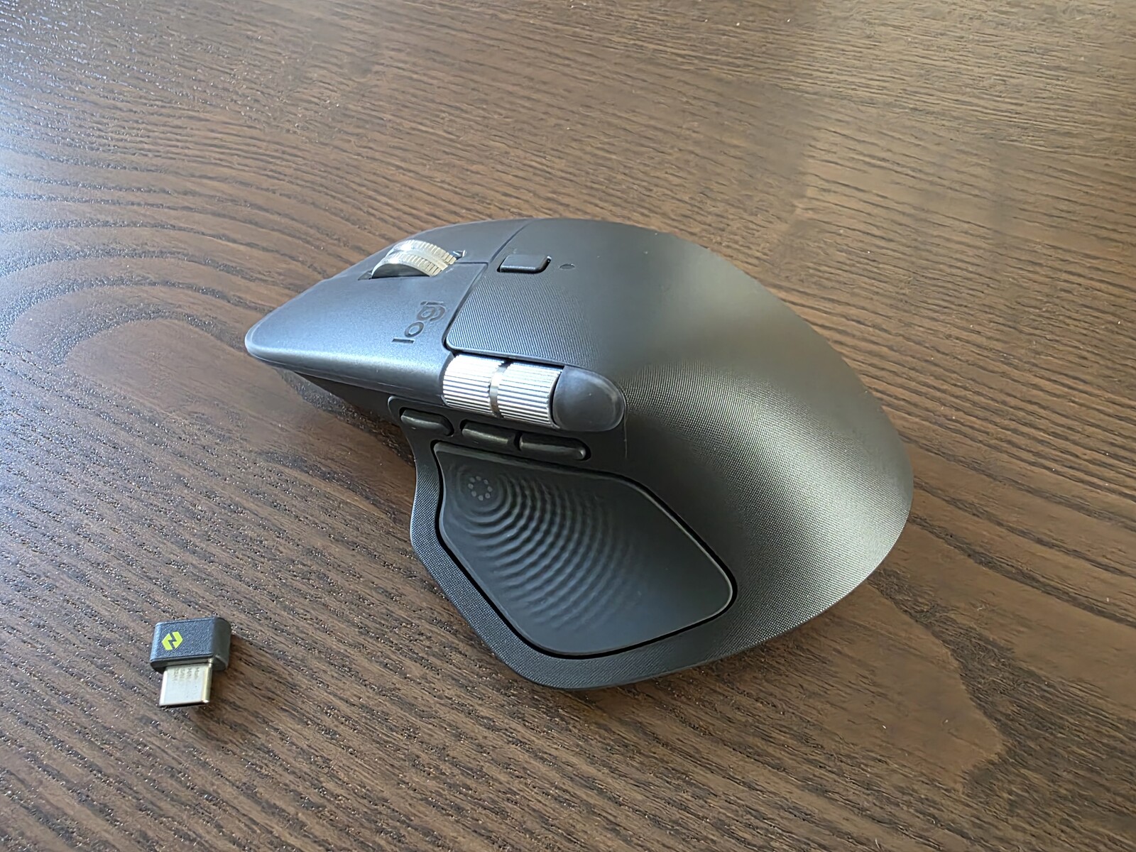 本次升级最显著的变化集中在拇指操控区域。图片显示,MX Master 4 在保留侧边滚轮和多个可编程按钮的同时,新增了一个独立的拇指按键,这或许意味着用户将获得更丰富的自定义操作空间。