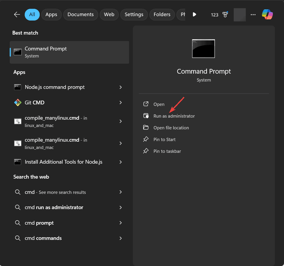 如果应用程序仍然存在,请尝试以管理员身份重新运行 PowerShell 或命令提示符命令,然后重新启动您的电脑。