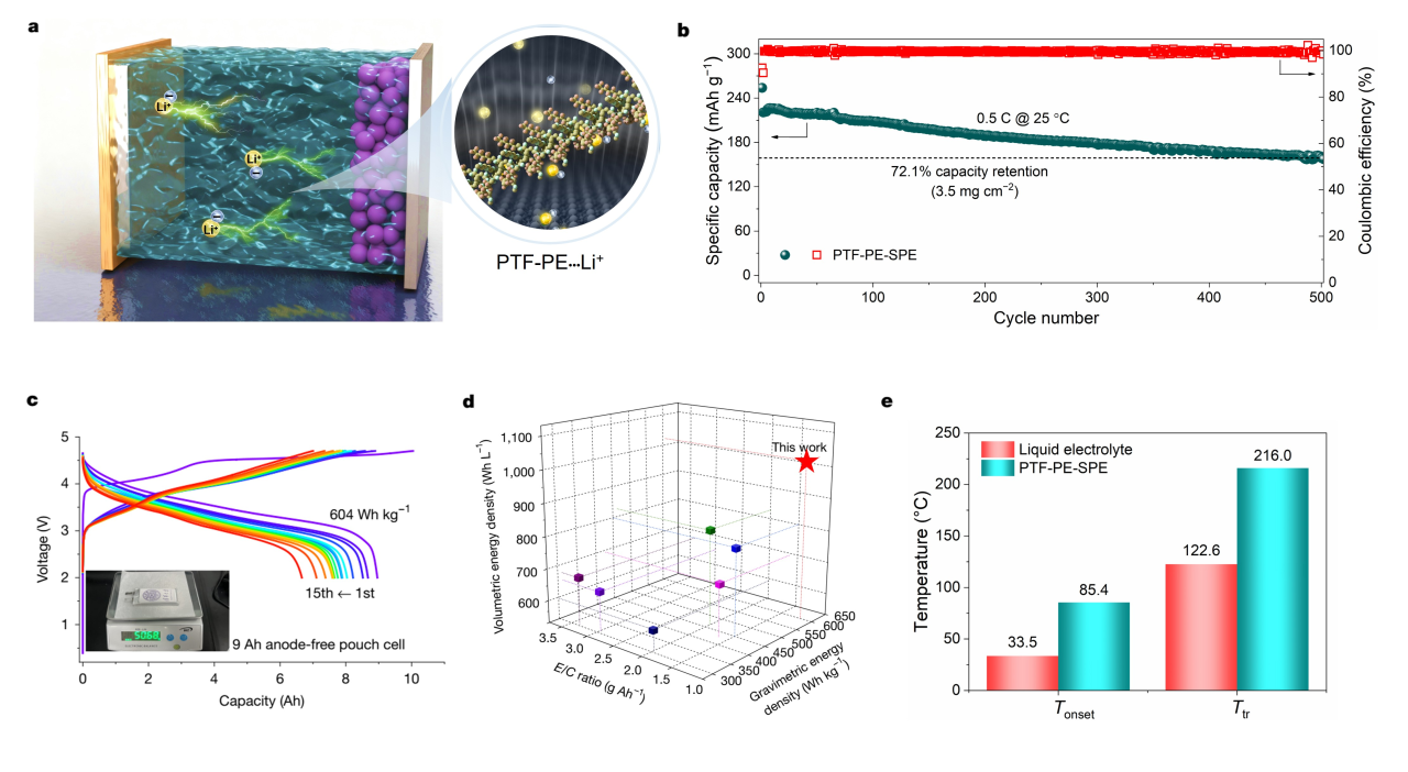 研究成果以“调控聚合物电解质溶剂化结构实现 600 Wh kg−1锂电池”(Tailoring polymer electrolyte solvation for 600 Wh kg−1 lithium batteries)为题,于 9 月 24 日在线发表于《自然》(Nature)期刊。