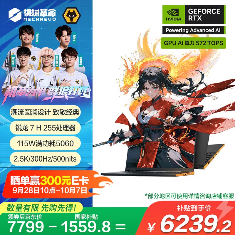 IT之家 9 月 28 日消息,机械革命旗下翼龙 16X 新增的“R7 H 255 + 32G + 1T + RTX5060”配置版目前已在京东开启首销,其中黑色版本定价为 7799 元,国补后 6239.2 元。白色版本定价为 7999 元,国补后 6399.2 元。