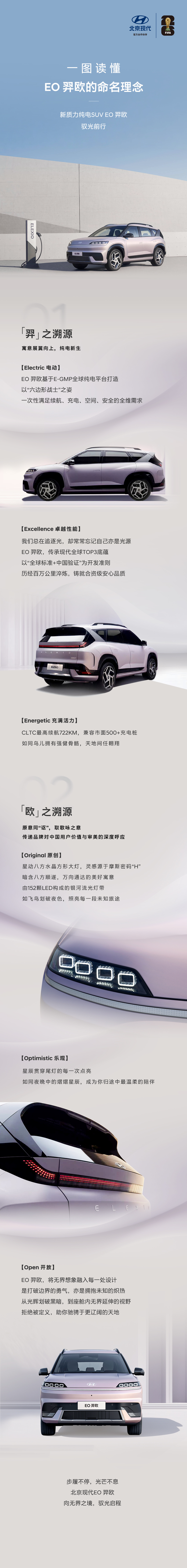 IT之家 9 月 29 日消息,今日,北京现代宣布其首款纯电平台 SUV——EO 中文名定为“EO 羿欧”。
