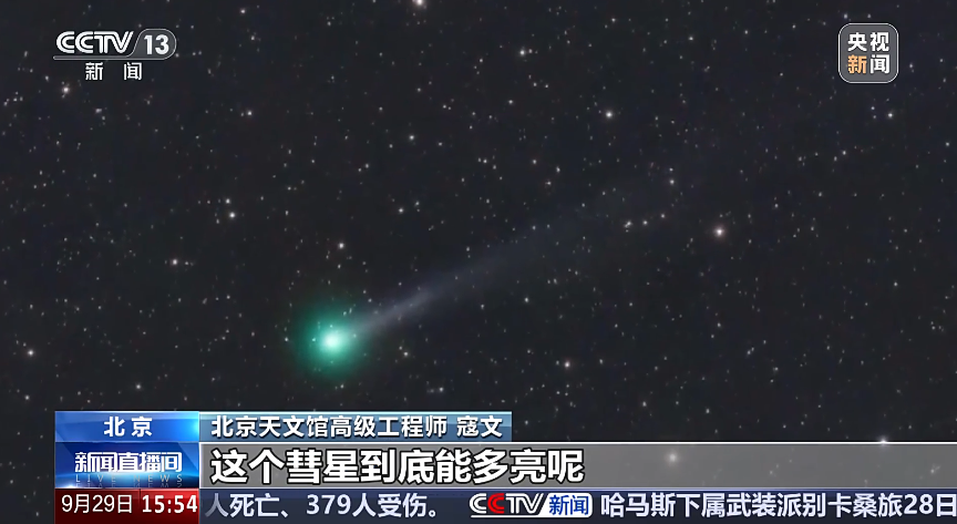 北京天文馆高级工程师寇文:最乐观的预报,这颗彗星的亮度可能达到两等左右。所谓两等左右,应该说是一个很容易用肉眼直接看到的彗星。常规的预报,这个彗星的亮度可能达不到这么亮,但亮度也在五六等以上,应该是今年非常亮的一颗彗星。当然彗星的预报不是那么准,而且彗星本身,随时可能会发生各种异常情况,我们拭目以待吧。