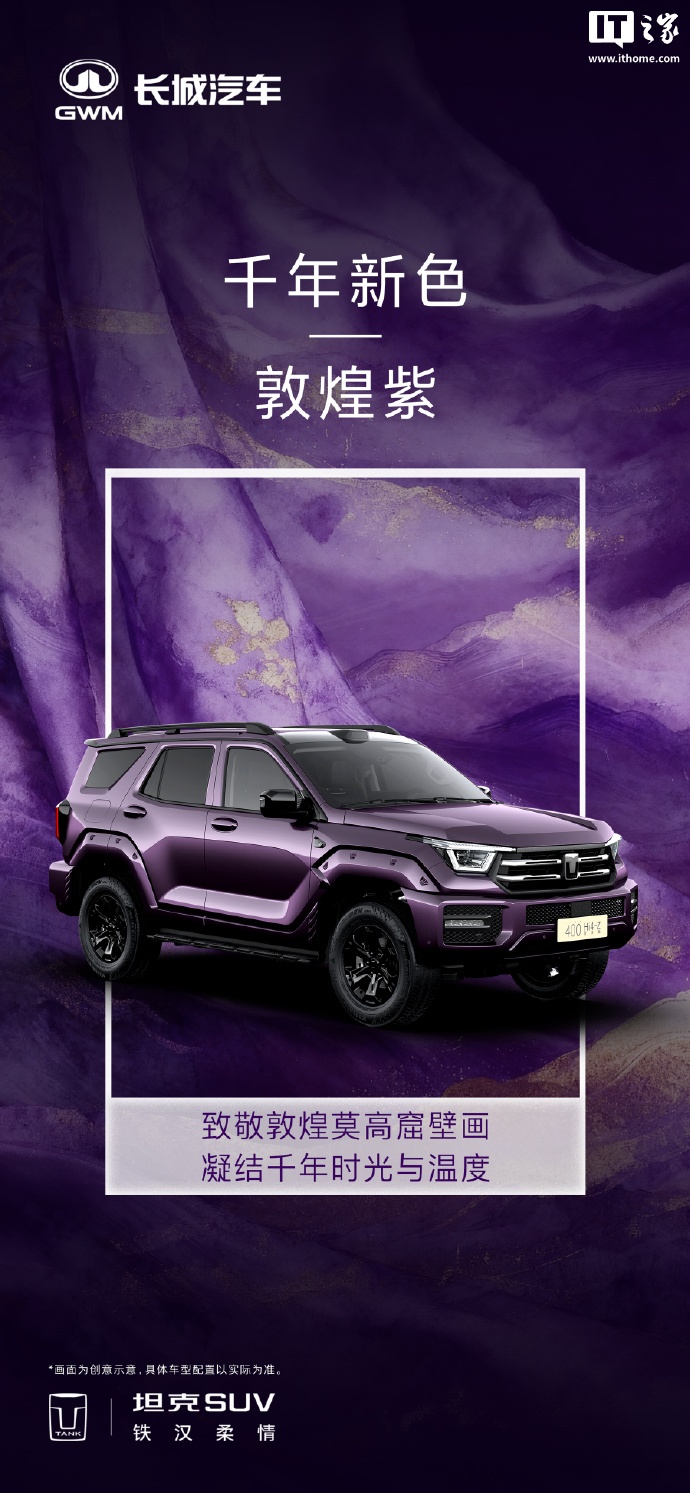 IT之家 9 月 29 日消息,长城全新坦克 400 于 9 月 22 日晚正式亮相,新增“敦煌紫”配色。坦克品牌今日宣布,全国 178 城展车已陆续到店。