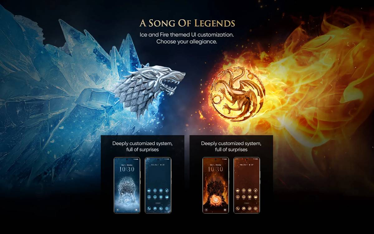 据了解,这款限量版手机将装在专属礼盒中,系统内置两款定制 UI 主题,分别对应坦格利安家族与史塔克家族。配件包括维斯特洛大陆的微缩模型、铁王座造型的手机支架,以及印有维斯特洛各大家族徽章的收藏卡片。
