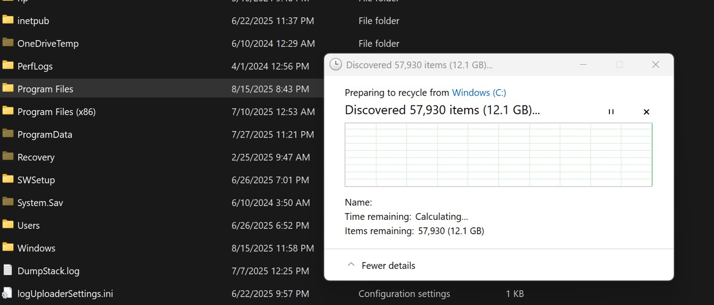 除了基础的颜色适配,微软还优化文件传输对话框的视觉细节。在新的深色模式下,文件传输进度条的主色调已由绿色更新为更具现代感的蓝色。同时,在传输暂停后,进度条会显示一种新的黄色调,而当传输失败或被取消时,预计会采用一种更柔和的红色。