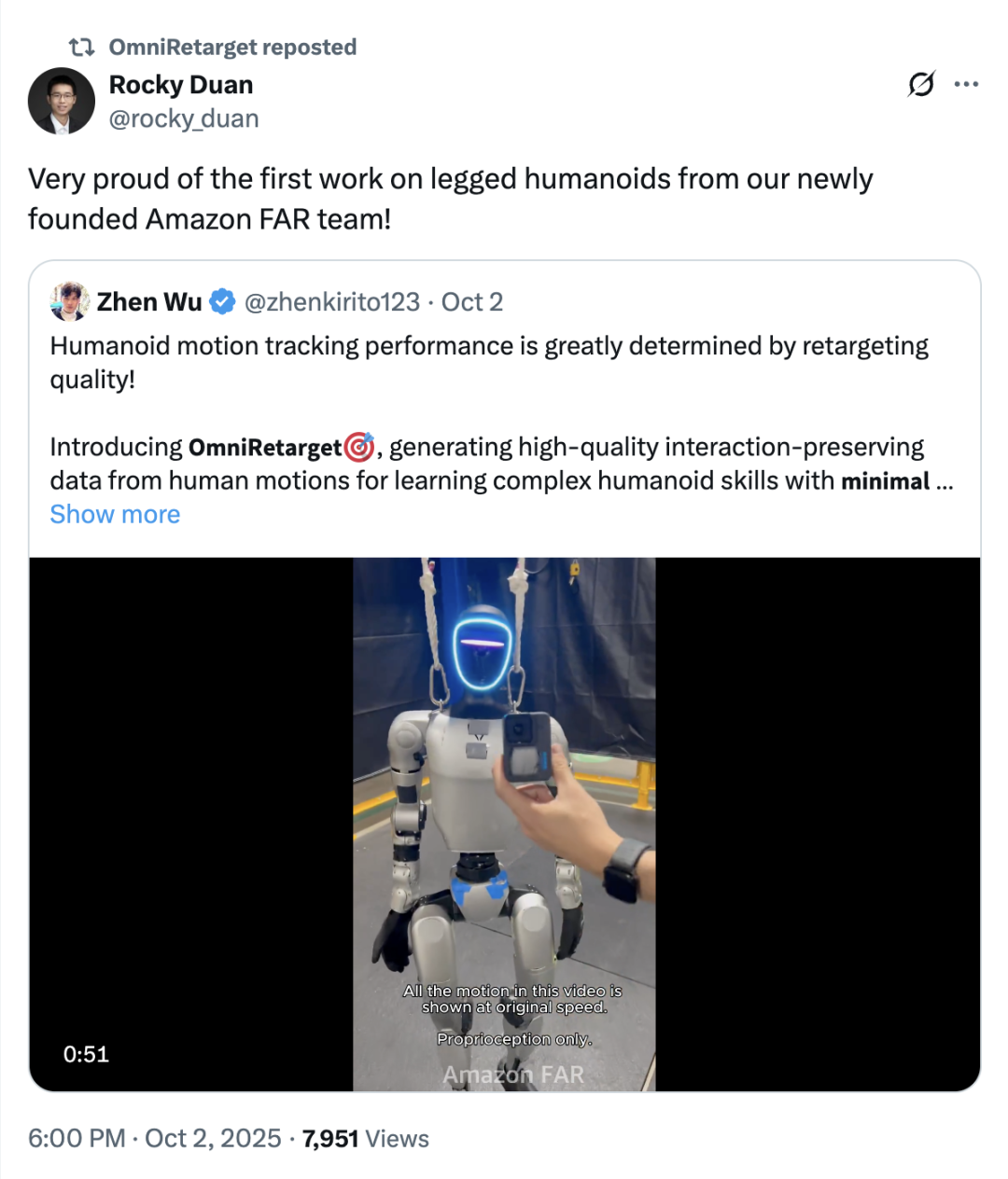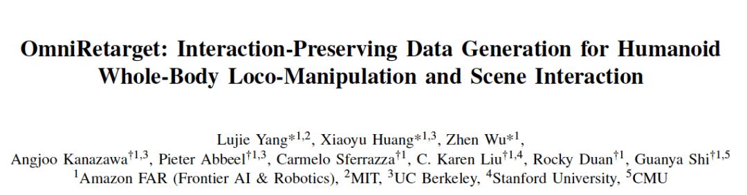 值得一提的是,OmniRetarget 背后的 Amazon FAR (Frontier AI & Robotics) 成立仅七个多月,由华人学者领衔。