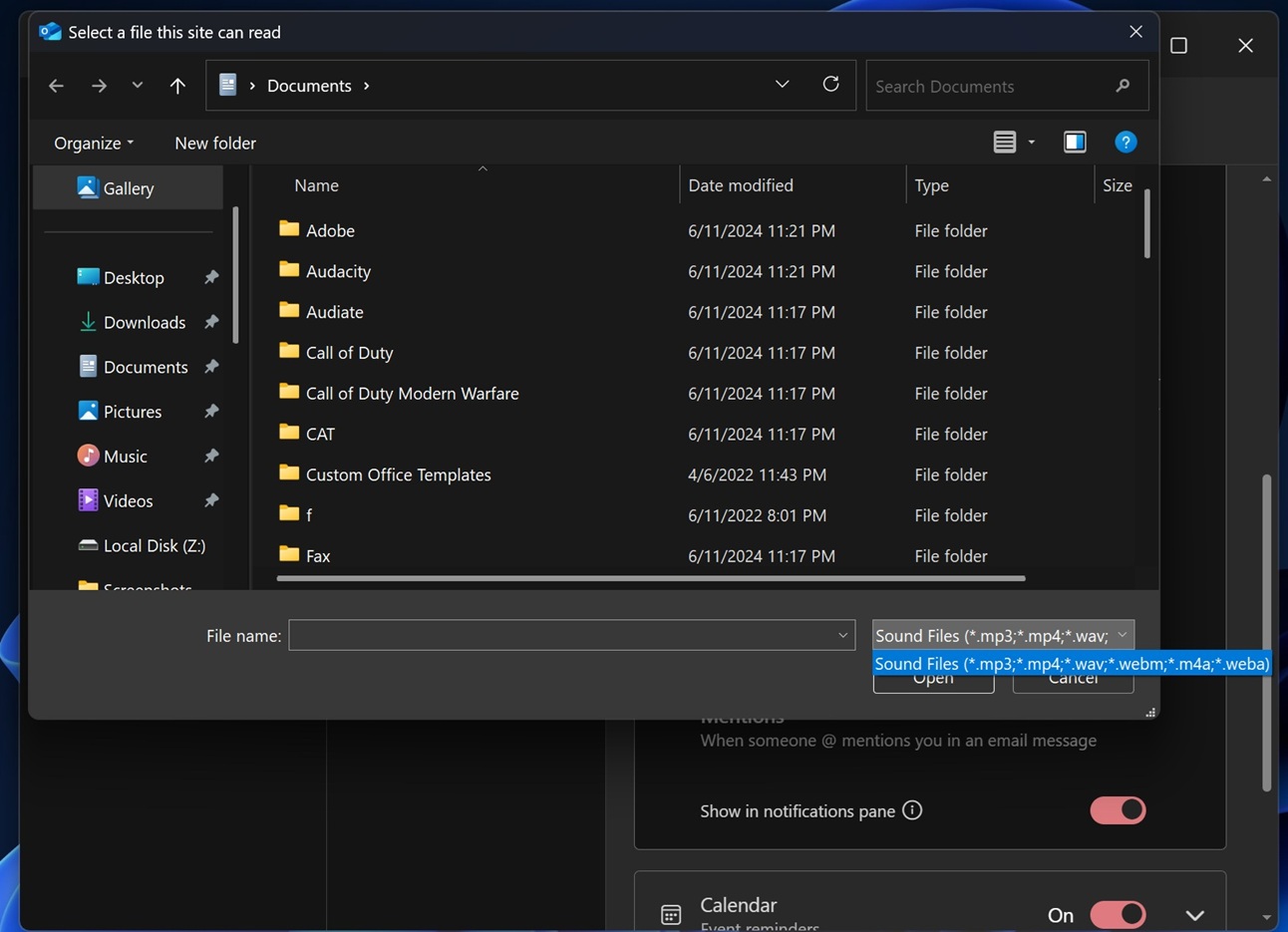 首先,新版本支持用户为邮件和日历事件设置个性化的自定义提示音。用户只需在通知设置中选择“自定义”选项,即可通过文件资源管理器上传 MP3 等格式的音频文件。