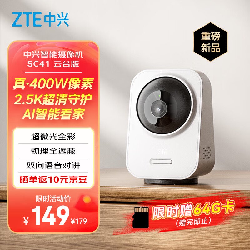 IT之家 10 月 7 日消息,中兴宣布推出一款小兴看看 SC41 云台版摄像头,将于 10 月 9 日开售,定价为 165.5 元,同时首发晒单提供 10 元 E 卡。