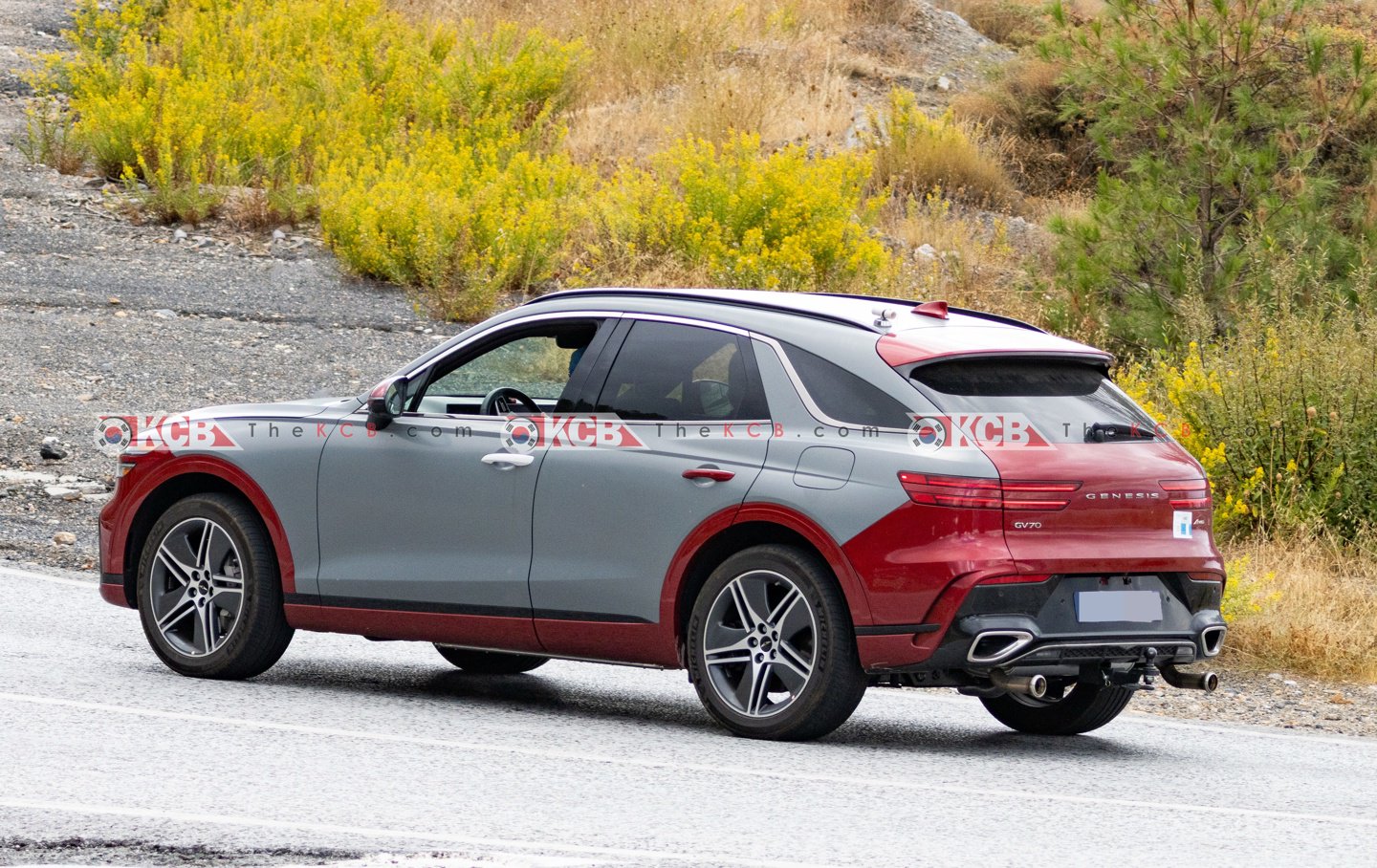 IT之家 10 月 8 日消息,汽车媒体 thekoreancarblog 昨日(10 月 7 日)发布博文,分享了一组在西班牙南部抓拍的路测图片,展示了一辆正在测试的捷尼赛思(Genesis)GV70 原型车,并贴有混合动力电动汽车(HEV)的贴纸。