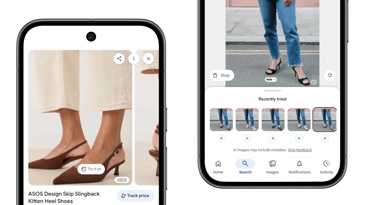 谷歌表示,这项功能能够感知服装的“形状和深度”,在展示试穿效果时保留这些细微差别。Try On 还会显示用户最近试穿的产品图片,方便快速对比不同鞋子在用户身上的效果。