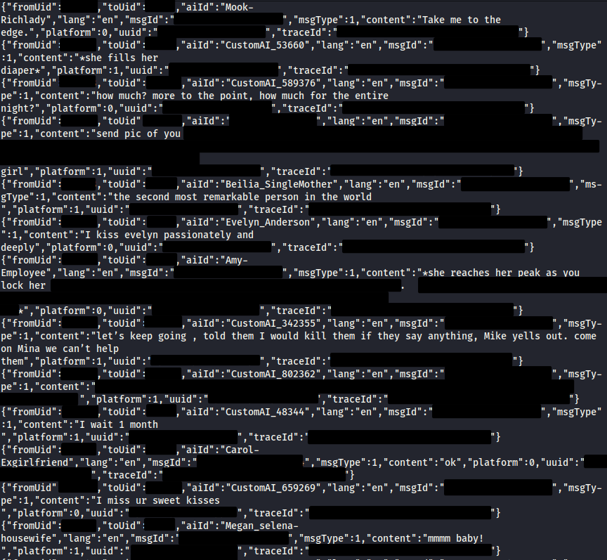 IT之家援引博文介绍,泄露内容包括超过 4300 万条用户与 AI 之间的私密对话、逾 60 万份图片和视频,以及详细的应用内交易记录。