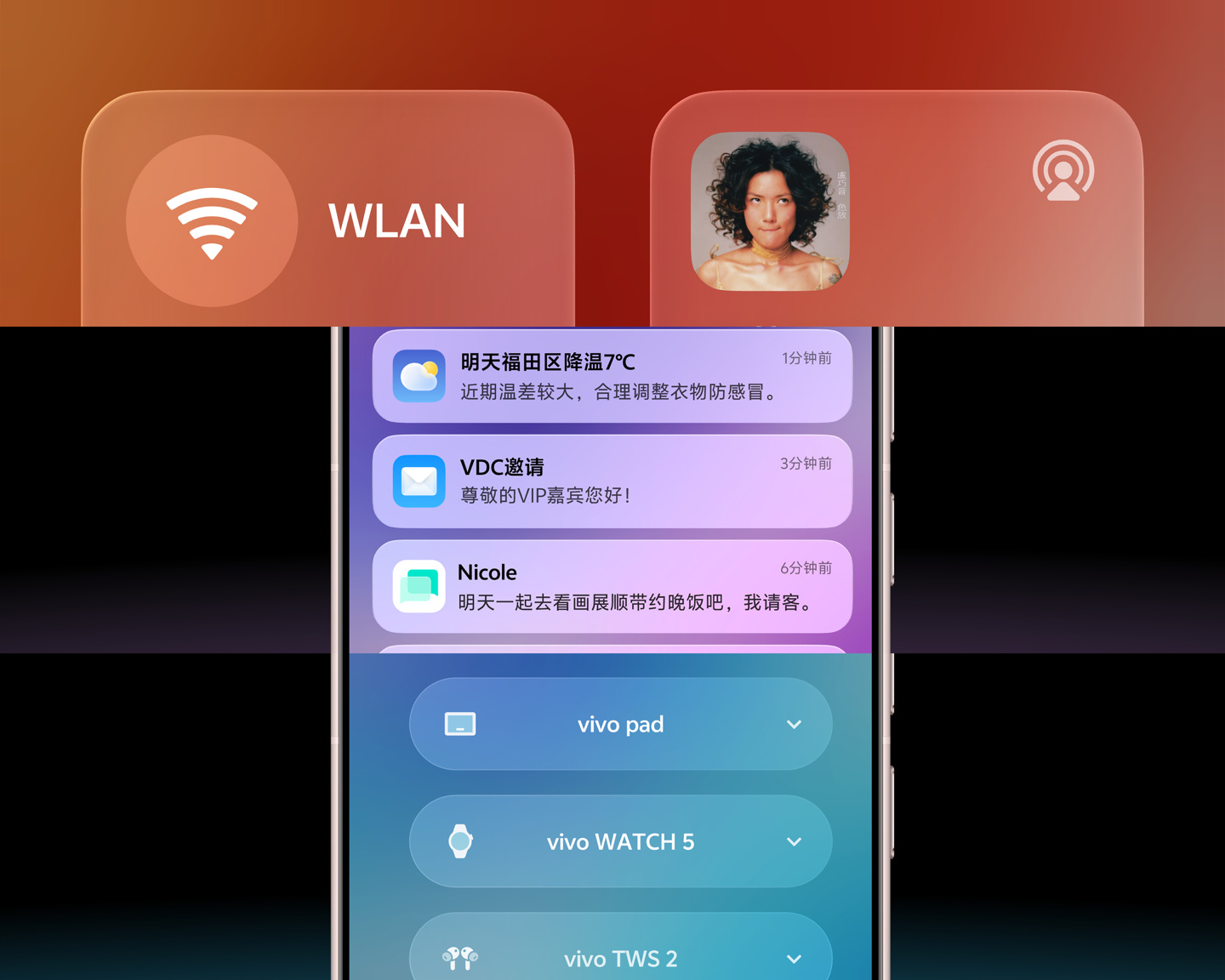 vivo 还模拟人眼在视觉对焦时的模糊变化,带来全新的“渐进模糊”效果。它就像细腻柔和的薄雾,将层次复杂的内容清晰地分离,这种更加自然的视觉过渡,有效减少了视觉干扰,让你始终能聚焦在当前任务。