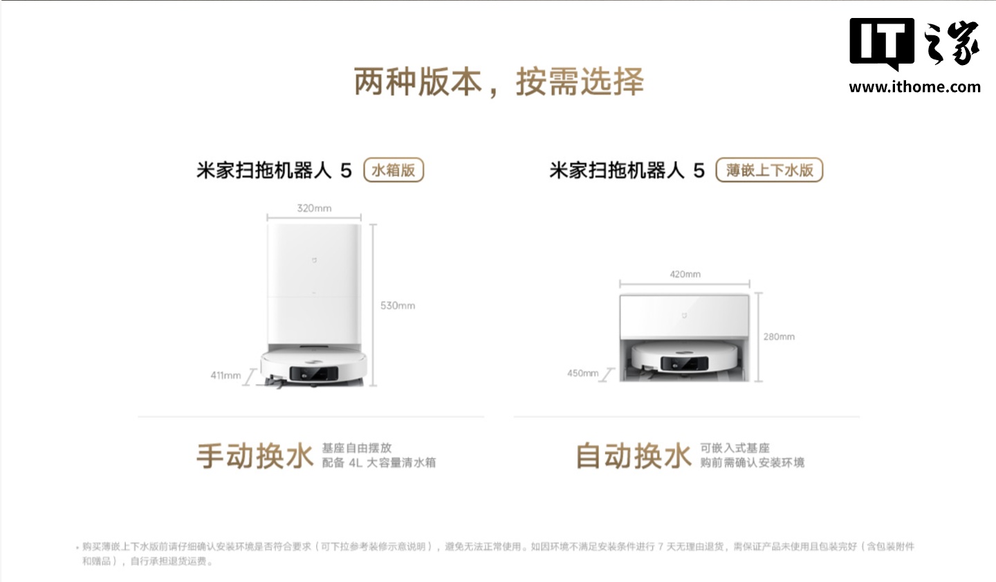 IT之家 10 月 10 日消息,小米米家扫拖机器人 5 现已开启新品预约,主打 7.9cm 超薄机身、AI 识别障碍物,越障高度可达 40mm,有水箱版和薄嵌上下水版,售价 3199 元起。