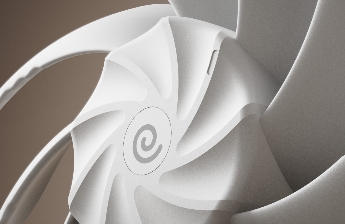 HAVN 的 H 系列风扇在扇框和扇叶上均应用 30% 玻璃纤维增强的 PBT 复合材质。其配备三槽电机自润滑 FDB 轴承,轮毂轴心包含导流凹槽,鱼鳍式的叶片边缘可稳定气流、减少湍流;此外 H 系列风扇支持 Zero RPM 低负载停转和简洁理线。