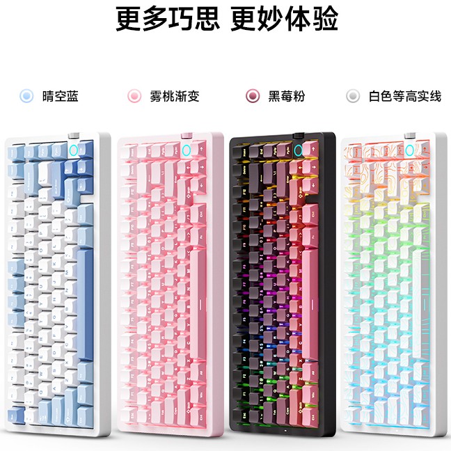 迈从 G75 V2 机械键盘目前可选晴空蓝、雾桃渐变、黑莓粉、白色等高实线四种外观版本,原价为 279 元(IT之家注:可在此基础上享受 15% 政府补贴)。