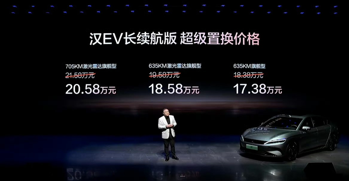 续航方面,DM-i 车型搭载第五代 DM 技术,实现 245km 纯电续航与 3.49L 超低油耗,汉 EV 智驾版新增 635km 续航车型。